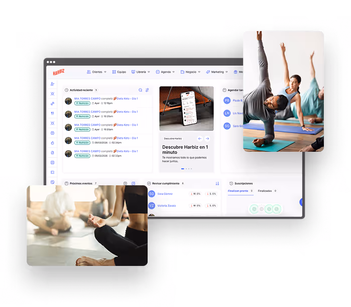 Tanto si das clases presenciales como online, necesitas coordinar contenido, horarios, reservas y pagos. Harbiz lo centraliza para que trabajes con más calma, orden y profesionalidad.
